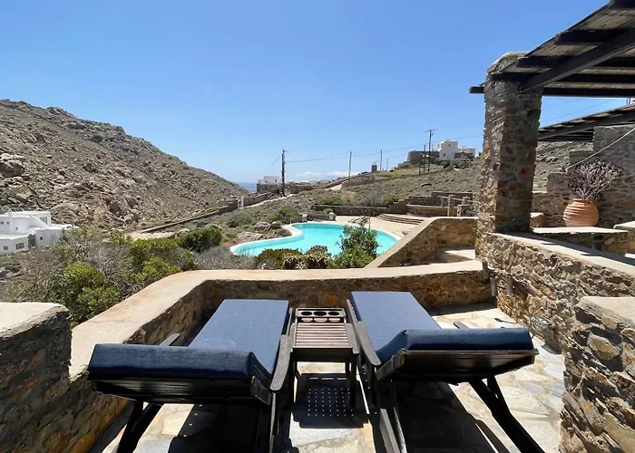 Disfruta de tus vacaciones en Agrari en el Agrari Village Apartment Mykonos. Ideal para quienes buscan una experiencia auténtica, está situado a poco más de 25 minutos a pie de la Jackie O 'Mykonos y a unos 6 km de la Pequeña Venecia de Mykonos. Hay una terraza con vistas a la piscina y comodidades, como piscina.